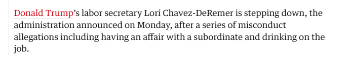 Oh and by the way, this isn’t the only BEST person in Trump’s Pedo-Orbit. This week, Alcoholic Labor Secretary Chavez-DeRemer was shamed out of the office for HER DRINKING problem (and fucking her security guys).